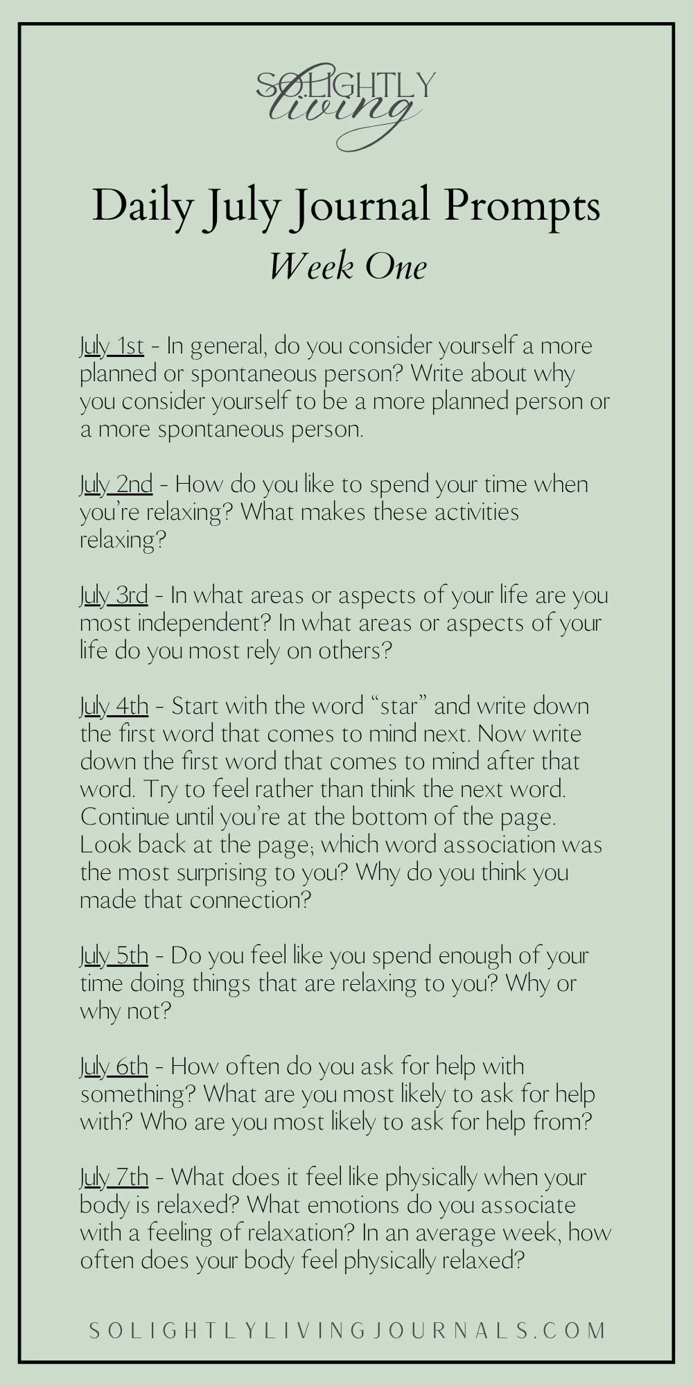 Journal prompts for July